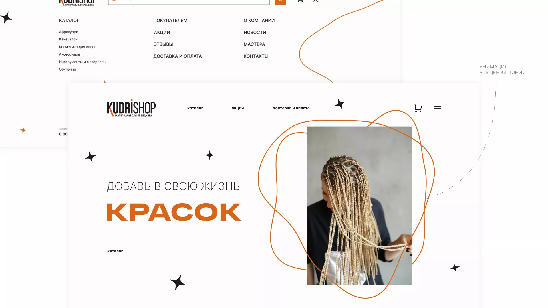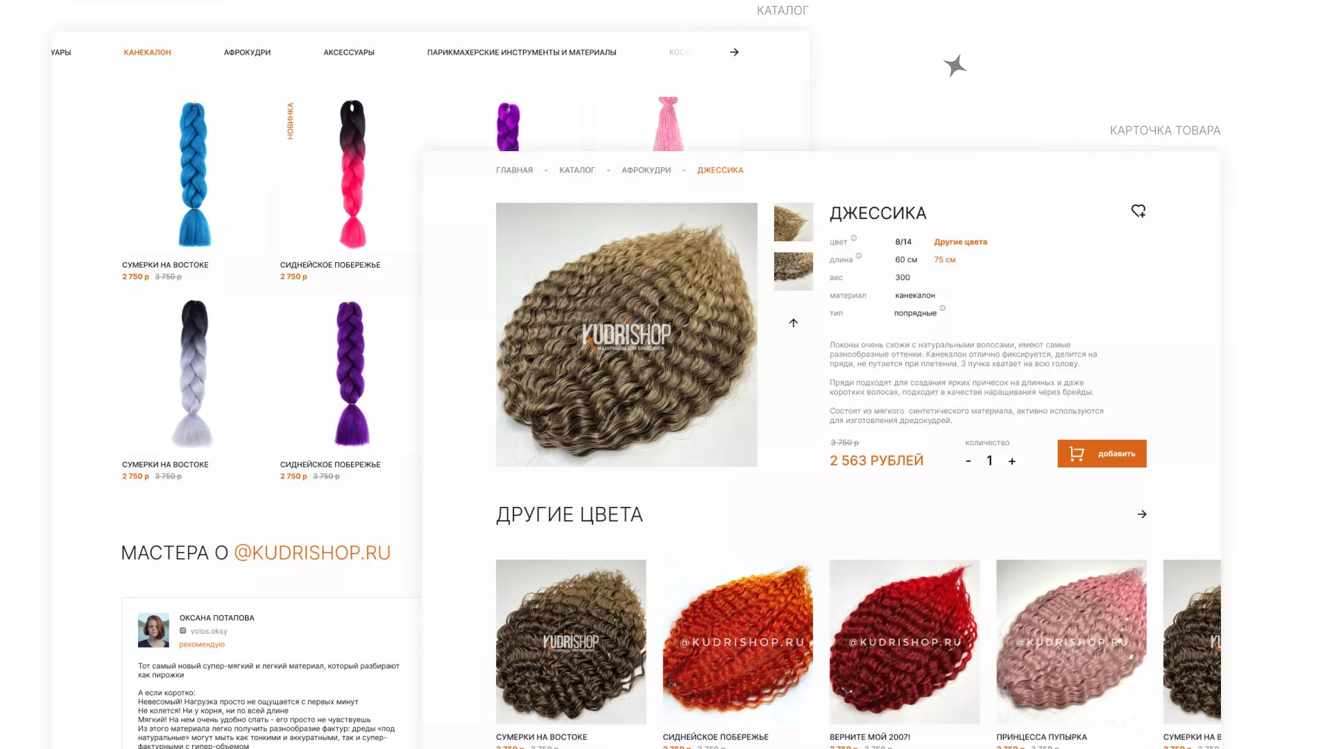 Создание интернет-магазина по продаже афрокудрей и других материалов для брендинга в Волгореченске. Целевая аудитория — молодые и современные девушки, желающие разнообразить свой образ.